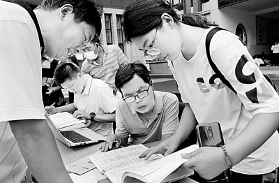6月27日,河南省洛阳市汝阳县第二高级中学教师为学生报考志愿出谋划策。康红军摄/光明图片