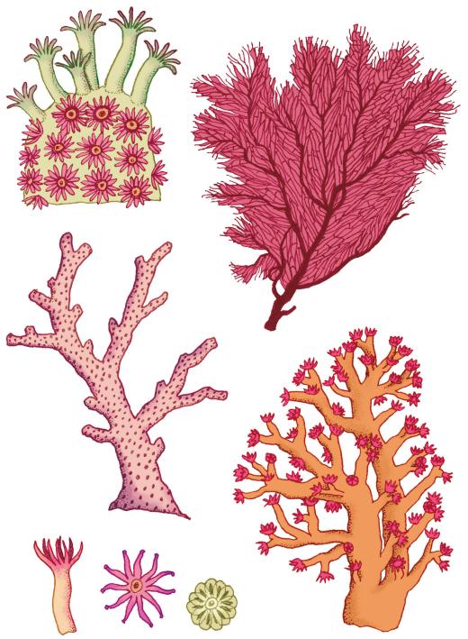 在珊瑚礁上,各类珊瑚对领地的争夺战已经白热化,每一种珊瑚都在和它们的邻居奋力争夺黄金地段。它们不仅需要源源不断的食物--微小的浮游生物,也需要干净的水和阳光。珊瑚通过生长在珊瑚礁周围的藻类获得营养,从而茁壮成长。为了和邻居竞争这些藻类,珊瑚们绞尽脑汁,长成了各种奇怪的模样,有的像大脑,有的像手指,有的像树枝。