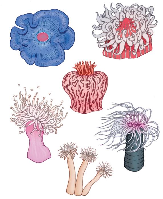 海洋中一些身体最柔软的动物往往生活在条件最艰苦的地方。在海葵生长的地方,巨浪和激流几乎冲走和摧毁了所有其他生物,但它们会粘在礁石上,或是将自己埋在沉积物中,躲过一切伤害。一旦离开了水,或是处于平静的环境中,它们看起来就像是没有形状的一小团,但当周围的水快速流动时,它们的触须便会张开,看起来就像一朵无比精美的花。它们的触须上布满了微小的刺细胞,可以从海水中捕捉食物,包括小虾以及漂浮的腐肉等。