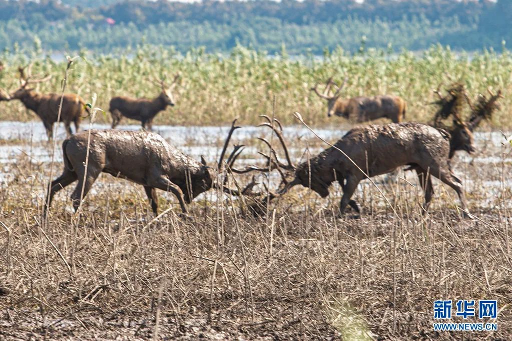 图为石首国家级麋鹿自然保护区内的麋鹿。新华网 李晓笛 摄