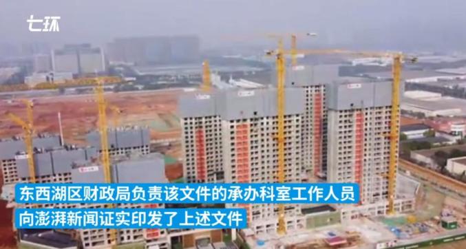 澎湃新闻报道称,财政局工作人员表示确有文件。有在售楼盘售楼部员工称,“最高可申请补贴15万元”。