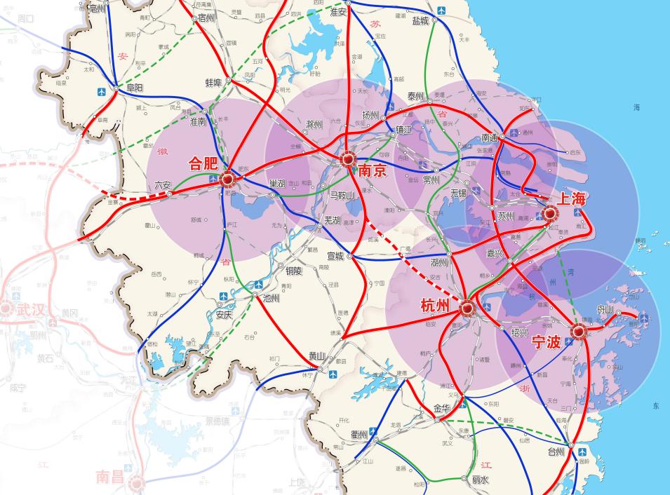 眼下,南京都市圈、杭州都市圈、合肥都市圈、苏锡常都市圈都已与上海实现高铁直连直通。长三角城市群五大都市圈中,只有宁波都市圈,无论公铁,都是“离得很近、隔得很远”。