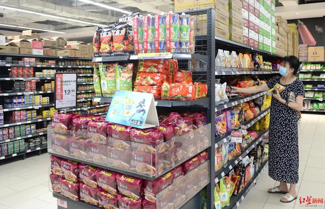 7月26日,永辉超市(龙湖滨江天街店),货架上物资充足