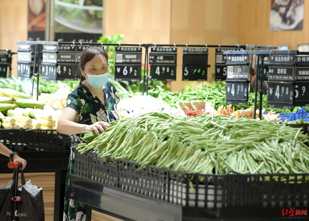 7月26日,永辉超市(龙湖滨江天街店),市民正在挑选蔬菜