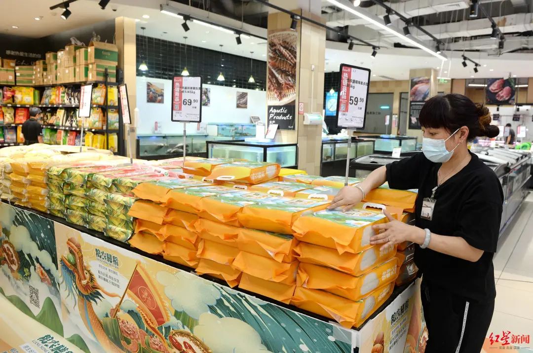 在永辉超市(龙湖滨江天街店),米面粮油、生鲜水果以及方便速食的货架上,货量都十分充足。负责生鲜区的主管胡磊告诉红星新闻记者,商超的生活物资备货量充足,比如肉类,每天是500公斤的供货量;禽类等冻品也是每天到货;水果蔬菜等甚至是每天到货两次,保证了货源。