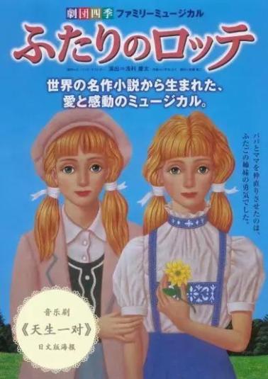 《天生一对》改编自德国儿童文学之父埃里希·凯斯特纳的小说《两个小洛特》,于1971年由日本最具影响力的演出团体——四季剧团搬上舞台,并作为四季剧团原创音乐剧的保留剧目常演不衰,至今已演出近千场,荣获日本政府颁发的“儿童福利文化奖”。