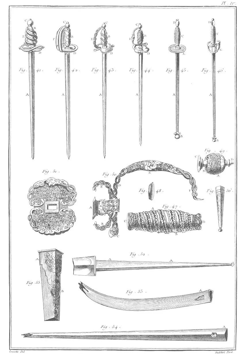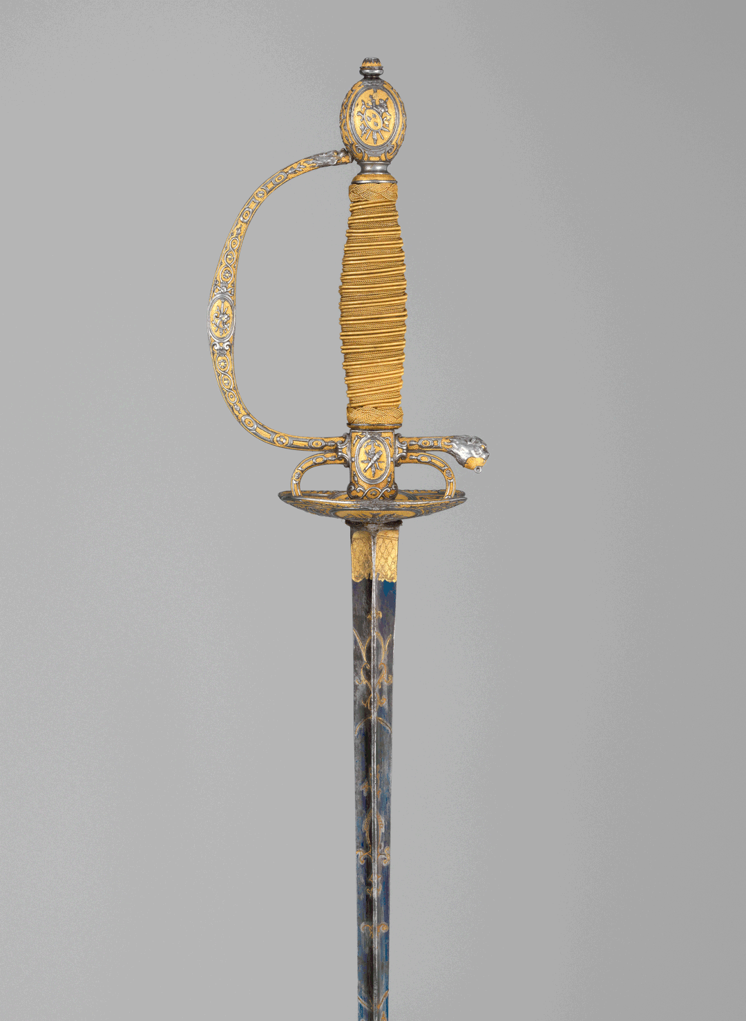 如果说今日此时,男士们“尽显威风”的时髦标志是豪车名表,那么在费尔森伯爵所处的路易十六时期,一把繁美锋利的佩剑则独登宝座。这种最初被作为决斗类实用兵器而出现于法国的短剑,与17世纪时层出不穷的剑术学校脱不了干系。