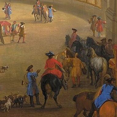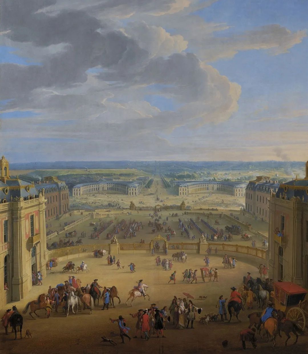 Jean-Baptiste Martin的油画《从凡尔赛宫看马厩》中,细腻表现了宫外访客们的样貌 / 现藏于凡尔赛宫