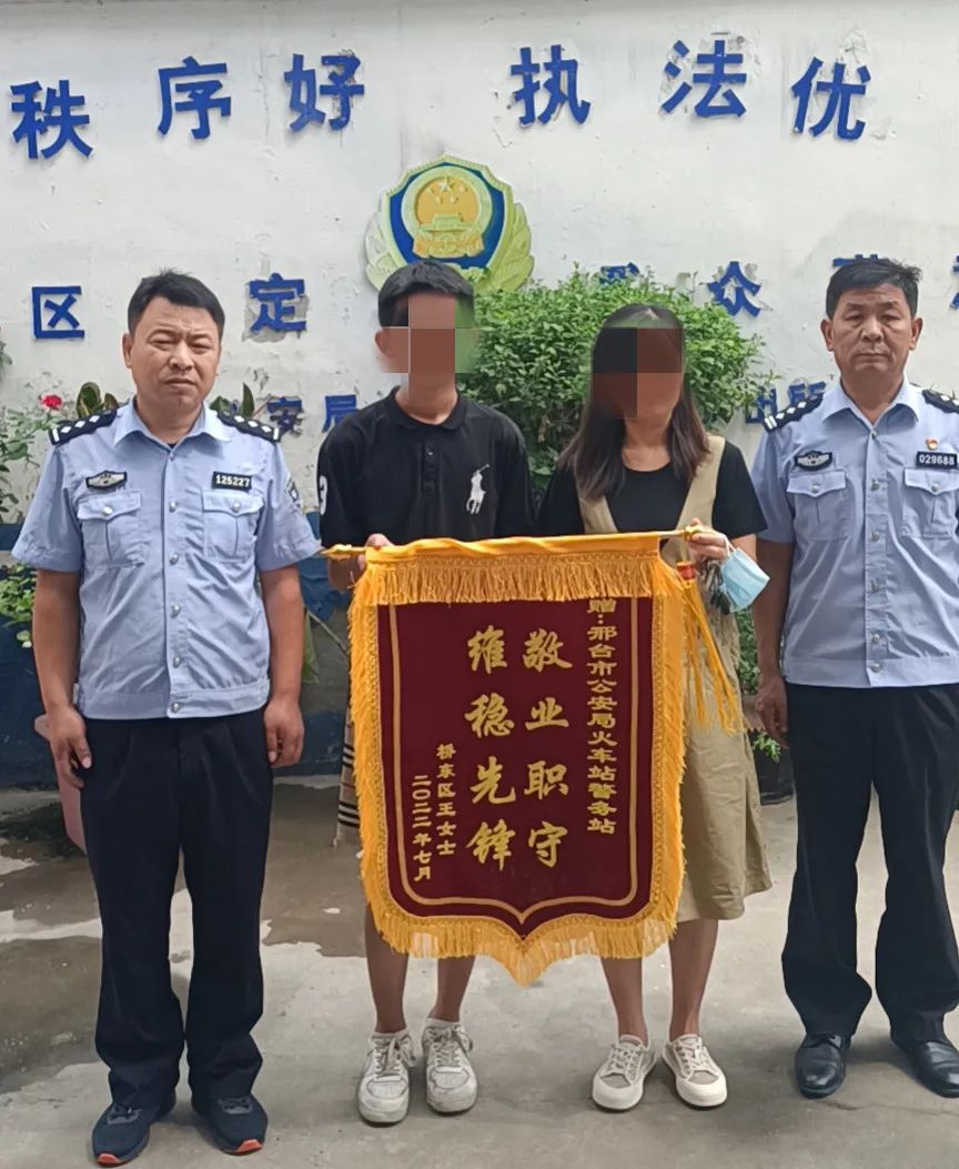 7月27日上午,一对母子来到公交分局站前派出所,将一面印有“敬业职守 维稳先锋”的锦旗送到民警手中,感谢民警热心帮其寻回丢失物品。