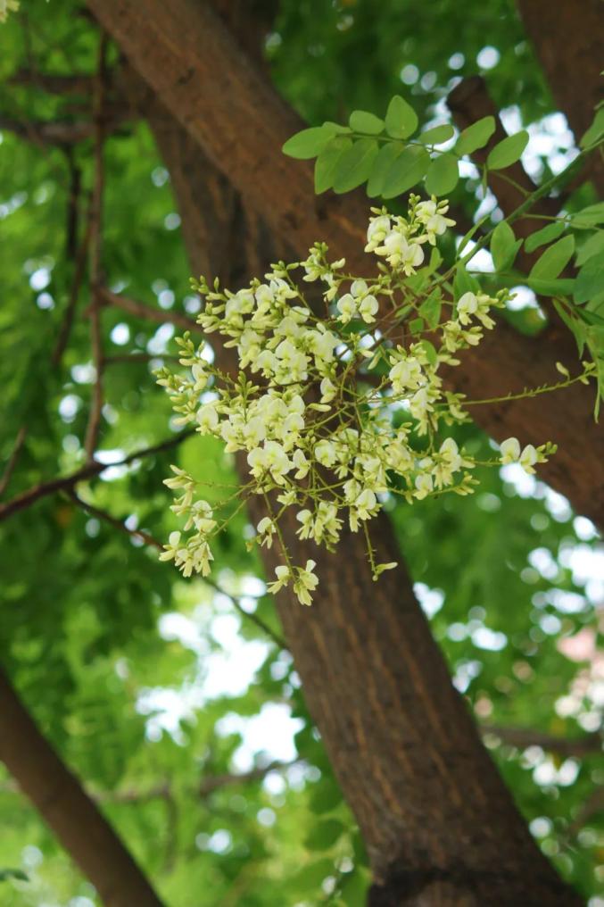 静静徘徊在花树间,深吸那甜香之气,再摘朵细细咀嚼,多想在树下栖息片刻,等风摇响白风铃,忆忆往事,念念斯人,旧梦多良辰。