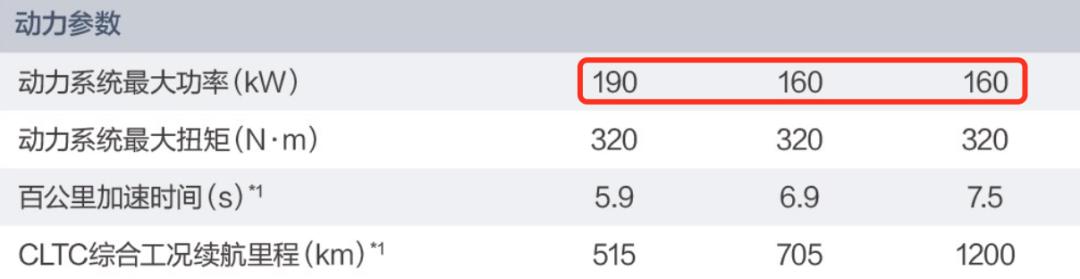 其中的逻辑看似奇怪,其实细想也不难理解,愿意买长续航车型的用户理论上更注重「续航」,电机功率小一些有利于做出更好的能耗。小电池车型本身有更好的轻量化,更有利于往运动方向发展,配大电机的效果也会更明显,三个车型的 CLTC 综合电耗上也能看出一二。