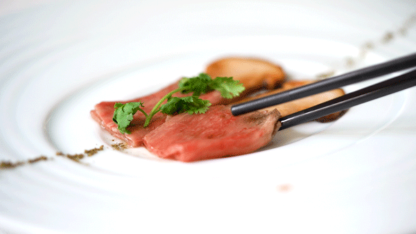 夏季菜单中的另一道季节限定,是香煎松茸和牛。经过简单的猛火快煎,和牛脂肪丰富,肉汁充盈,松茸的菌香与汁水被牢牢锁住,搭配少许花椒粉就能让舌尖为之震撼。