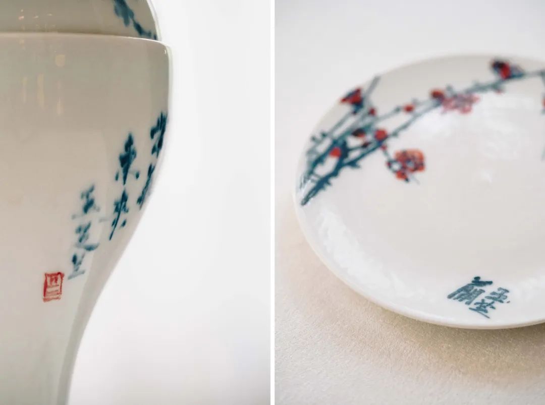 2007年兰桂均师傅曾在景德镇花了2年时间学习瓷器做法,目前餐厅内的所有釉下彩餐具,都由兰师傅亲自设计、制作,每只餐具上都有玉芝兰的专属印记。