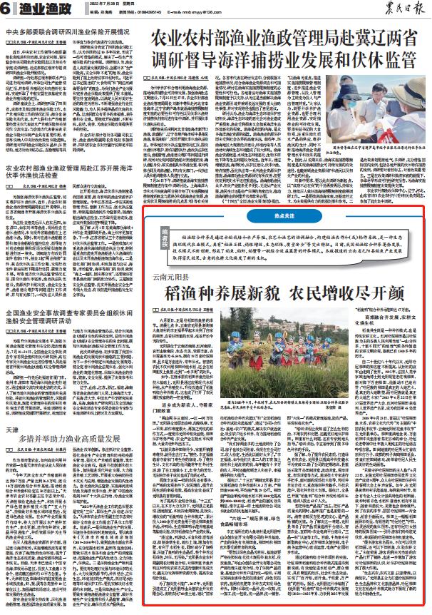 原标题:《【关注】稻渔种养展新貌,农民增收尽开颜!《农民日报》报道红河元阳县稻渔综合种养模式》