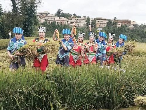 2018年9月23日,首届以“哈尼梯田鱼米香,农耕文化代代传”为主题的“中国农民丰收节·云南元阳稻花鱼丰收节”在元阳县举办。梯田里满地金黄,万亩稻田中央坐落着祭祀谷神的神台,哈尼长老带领中壮年族人用纯正的哈尼语言吟唱古歌。田间地里的哈尼男女忙着收割和打谷子,成群的鸭子奔向梯田觅食,孩童们在田间嬉戏,演绎着哈尼人民生活美好的生动画卷。