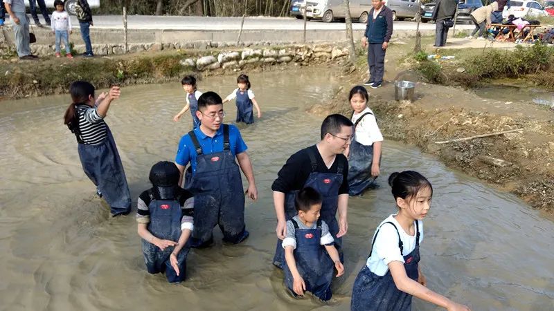 游客在哈尼梯田里捉鱼。世博元阳公司 供图
