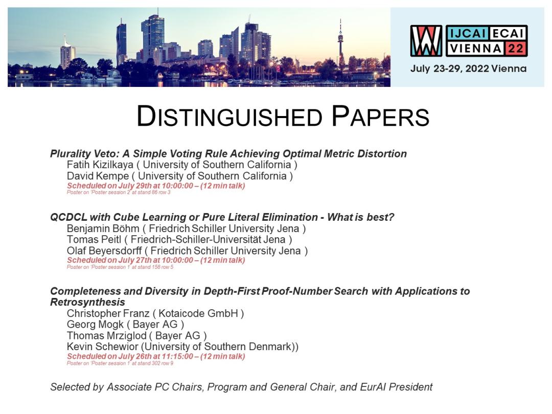 原标题:《IJCAI 2022奖项公布:3篇杰出论文,南加大、耶拿大学等机构在列》