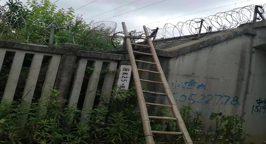 6月4日,镇江市闲杂人员通过搭梯方式进入宁杭高铁