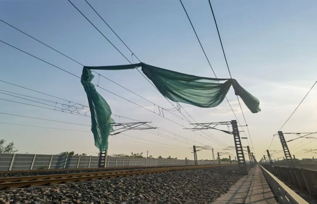 5月23日,陇海铁路下行线徐州站至大湖站间接触网挂防尘网