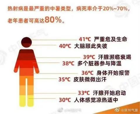 中暑是指人体在暑热天气、湿度大及无风环境中,病人因体温调节中枢功能障碍、汗腺功能衰竭和水、电解质丧失过多而出现相关临床表现的疾病。人体感觉适宜的温度在22-26℃,相对湿度在40%-70%。一般环境温度超过30℃,人体即会感觉热。超过35℃,持续在不通风环境下生产作业,就有可能导致中暑的发生。7月13日14时30分,上海徐家汇气温达到40.9℃,追平有气象记录以来(1873年)最高气温记录。上一次上海达到40.9℃还是在2017年7月21日。