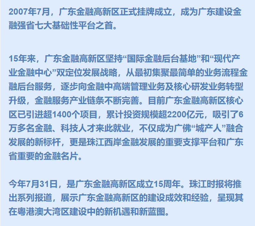 在千灯湖创投特色小镇工作大半年时间,中科沃土总经理助理袁柳生已经习惯了每天往返广佛通勤的生活,“以前很担心从广州过来上班不方便,现在发现交通是非常便利的,从我家到公司不过是30分钟左右。”袁柳生笑着说,广东金融高新区有优质的教育、医疗资源,优美的居住环境,生活幸福指数很高,所以吸引了不少同事落户定居,“以前同事们都不太愿意离开广州来佛山,结果来了才发现,这里的生态环境和工作氛围非常好,现在很多同事已经成为了‘新南海人’。”