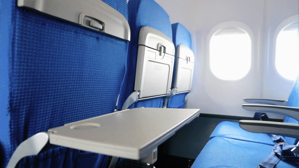 南航ARJ21机型采用90座的全经济舱布局,客舱座位采用“左二右三”布局,每排座椅后均配备了USB充电插口,方便旅客为电子设备充电。
