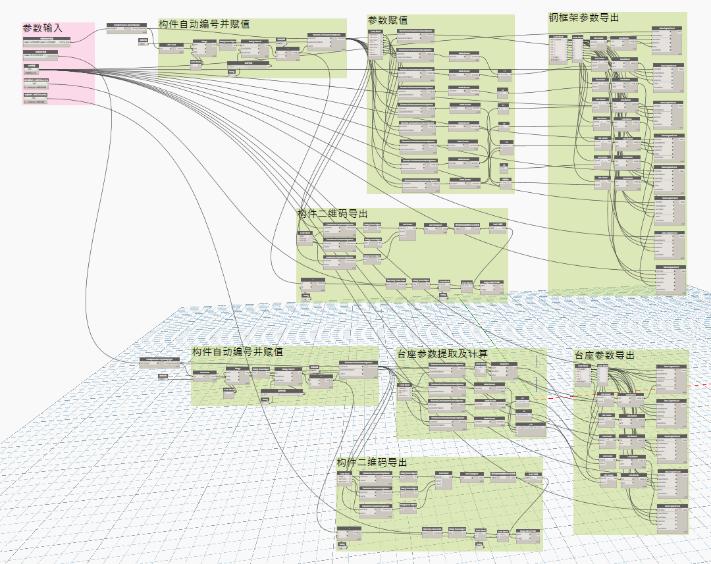 定制加工包括构件信息导出与全专业预制。构件信息导出即通过dynamo编程将各模块预设参数导出至excel表中,并应用QRCdor模块导出二维码,实现构件自动出图及构件二维码自动导出。