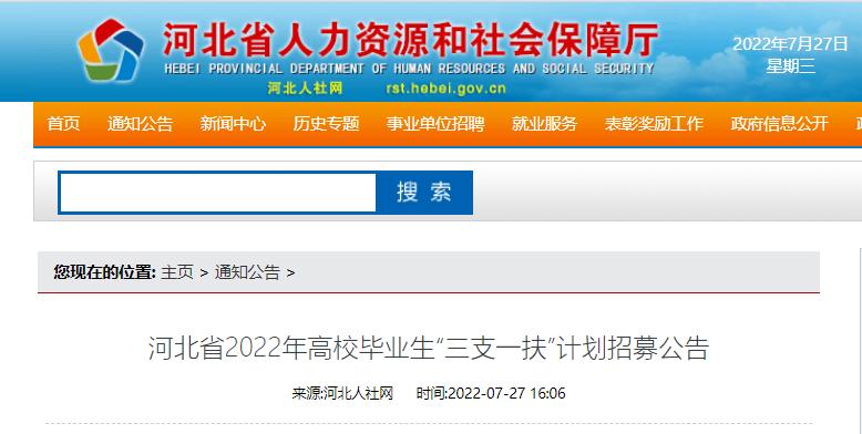 《河北省2022年高校毕业生“三支一扶”计划招募公告》