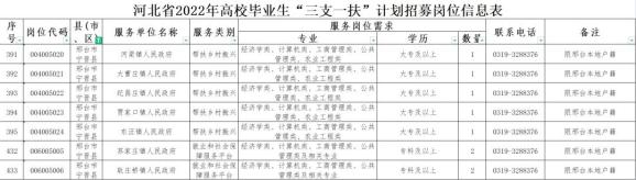 附件:河北省2022年高校毕业生“三支一扶”计划招募岗位信息表