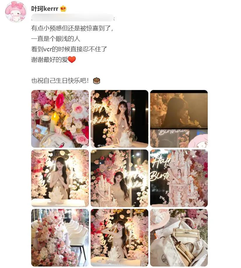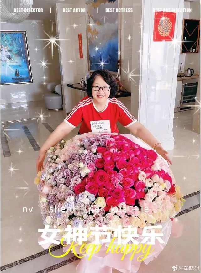 叶珂就在同一家酒店晒了自己收到的超大花束。