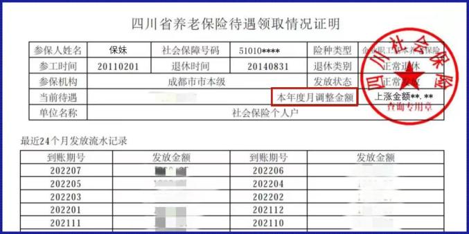通过打印《四川省养老保险待遇领取情况证明》,查询养老金的待遇调整情况。