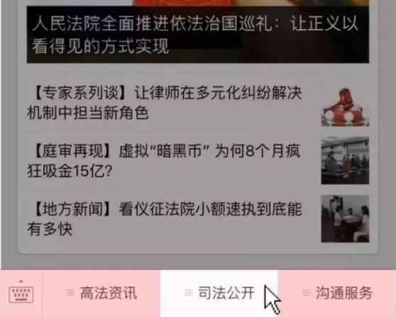 请在“最高人民法院”公众号下方“司法公开”菜单