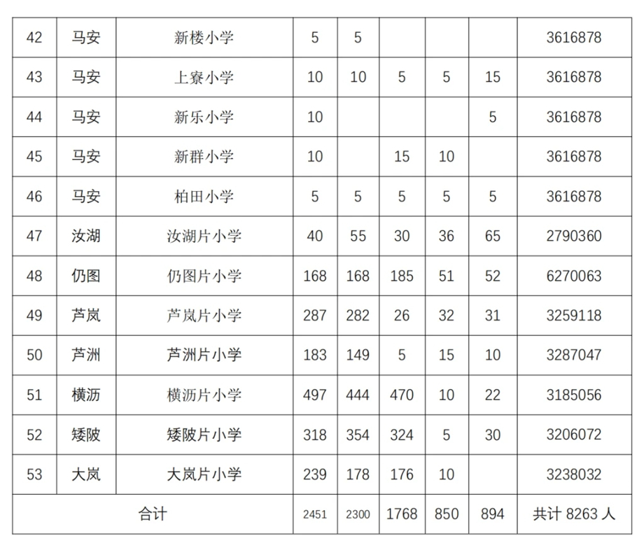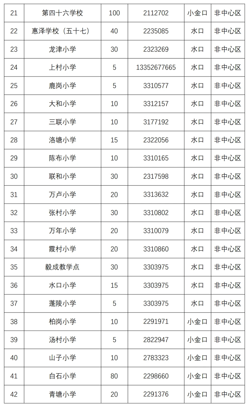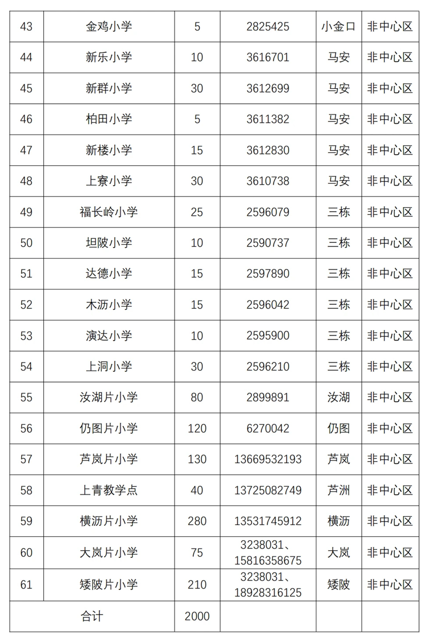 据介绍,公办学校第二阶段招生小学一年级共有61所学校2000个学位,初中七年级共有17所学校771个学位;民办学校第二阶段招生共有26所学校提供小学一年级2642个学位、初中七年级1719个学位。非起始年级“民转公”招生有53所公办学校提供二至六年级学位共8263个,21所公办学校提供八、九年级学位共2180个。