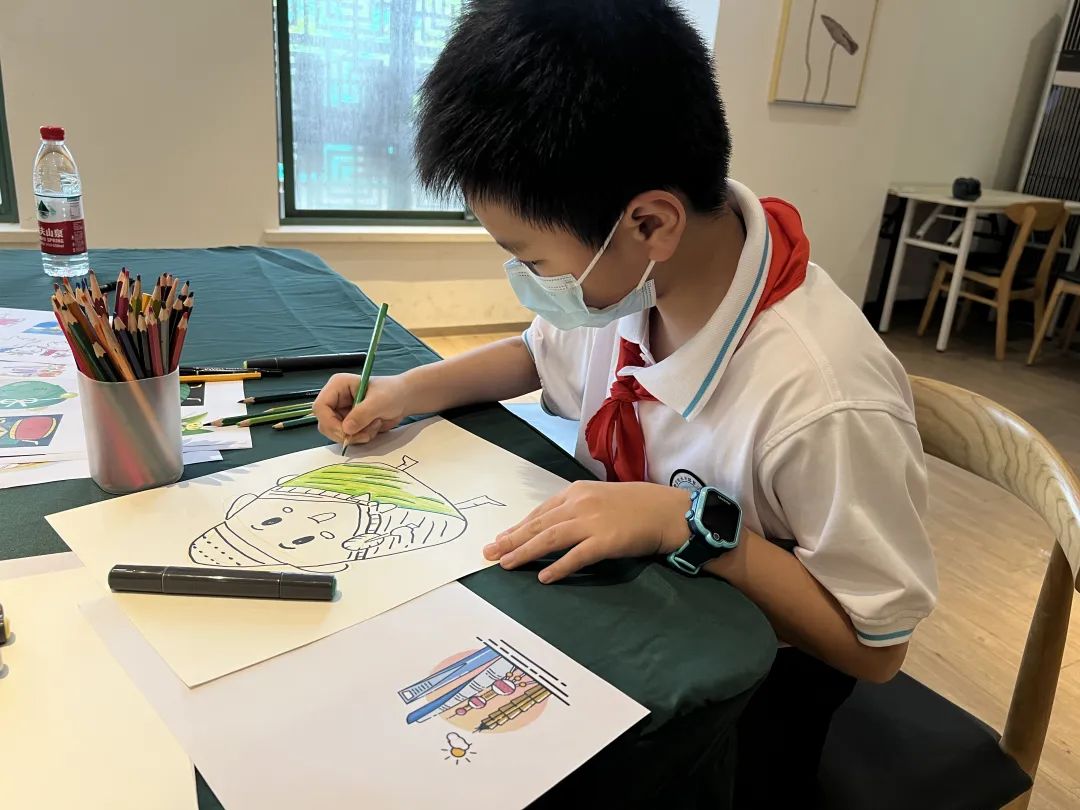 活动现场,12岁小朋友周子涵充分发挥自己的想象力,先用彩铅在画纸上勾勒出卡通粽子的外形,然后用深浅不一的绿色为粽子叶进行补色,打造立体、可爱的卡通粽子形象。