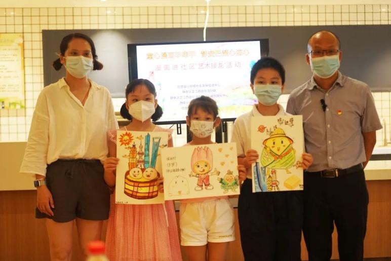 同时,他也向大家展示了新疆小朋友创作的作品,鼓励小朋友在绘画创作过程中,将上海的美食及建筑地标作为画中元素,突出上海特色。