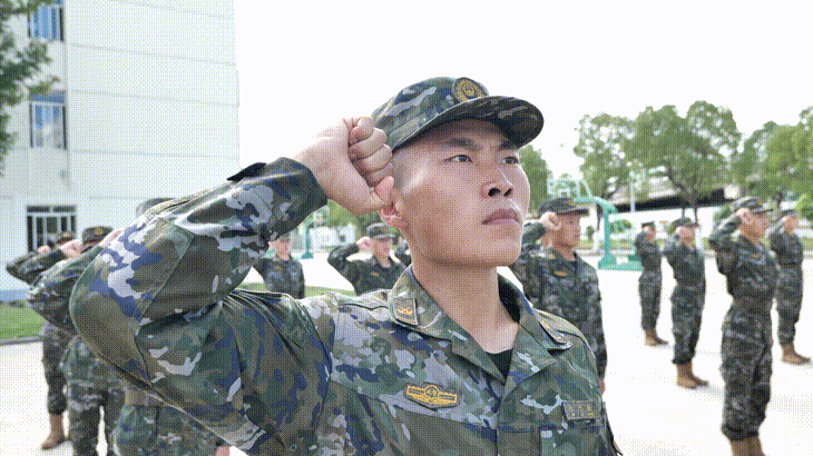 在武警上海总队执勤第三支队某中队营区操场上,官兵们身着新配发的21式夏季迷彩作训服,军姿挺拔、士气高昂,全体官兵面向军旗,高举右拳,重温军人誓词,一句句铮铮誓言震耳欲聋、响彻全场。