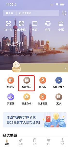 方式2:通过“随申办”APP或“随申办”微信、支付宝小程序首页“核酸查询”进入。