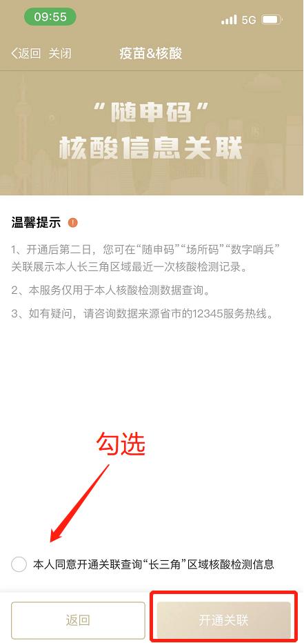 1、在“长三角核酸查询”页面,点击页面中间栏目【“随申码”核酸信息关联】