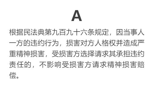 因当事人一方的违约行为,损害对方人格权并造成严重精神损害,受损方选择请求其承担违约责任的,不影响受损方请求( )。