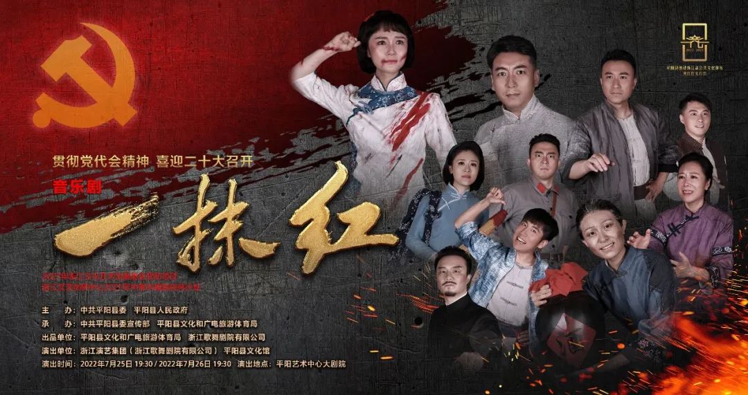 近日,以此为创作背景的大型红色主题音乐剧《一抹红》开启巡演。该剧由序“一方红土”以及“一位来客”“一大召开”“一腔热血”“一门忠烈”“一心向党”“一座丰碑”六幕构成,塑造了一个又一个高举共产主义旗帜,前赴后继、舍身奋斗的革命者形象,将平阳“一草一木一忠魂,一山一石一丰碑”娓娓道来,用这种特殊的方式,将浙南儿女百折不挠、英勇顽强的革命精神展现得淋漓尽致。