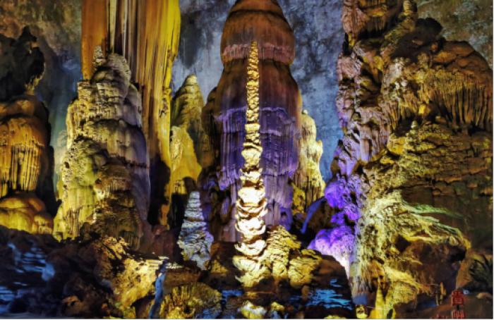 织金洞景区是贵州目前唯一一家世界地质公园,具有“大”、“奇”、“全”的溶洞特色和极高的审美价值。景区洞体分为四层,总面积70余万平方米,13个大厅47个小厅堂,是目前世界上洞穴大厅分布密度最大、钟乳石分布密度最高、类型最丰富、珍稀形态最多的洞穴。