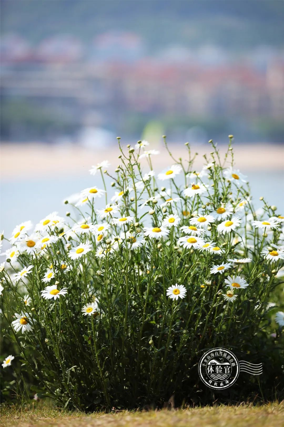 半月湾山坡上成片的白色大滨菊在风中静静盛放,此间散步,感受着半月湾海水浴场的海风轻拂,听着浪花轻拍海岸的声音,让人从头到脚都得到放松。