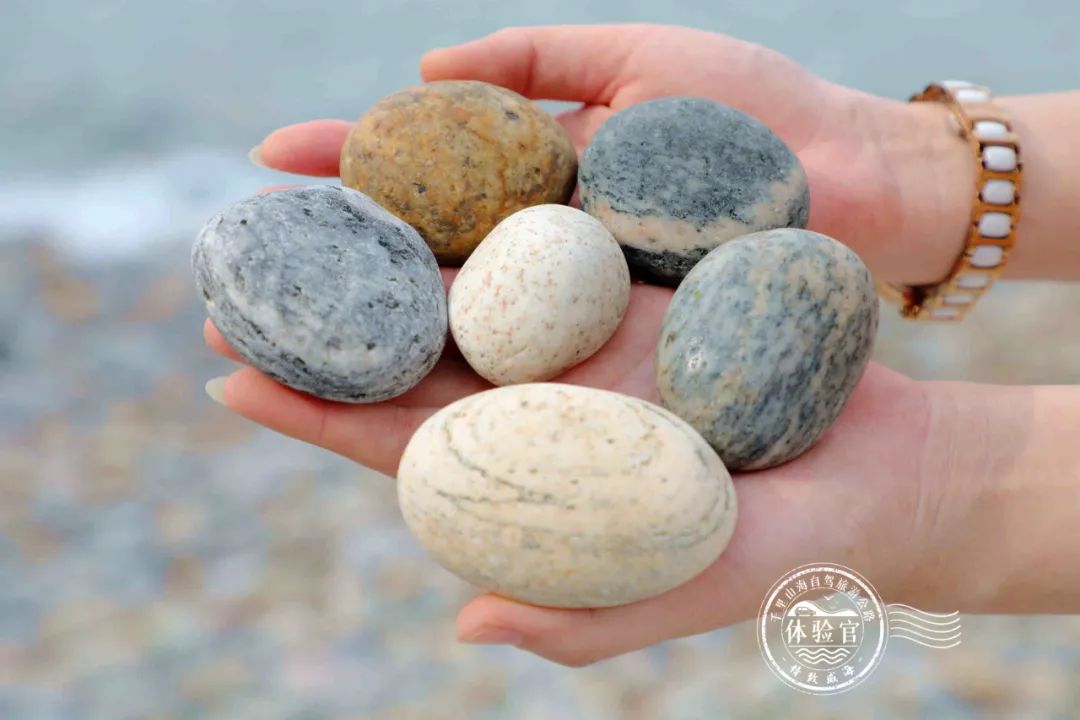 圆润的石头层层叠叠,在海浪积年累月的冲刷下趋于鹅蛋般光滑,奔涌到岸边的海浪格外清爽怡人。
