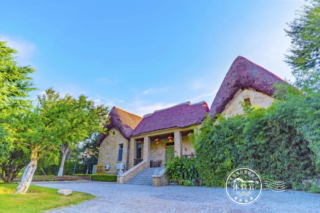 公园内建有形态各异的海草房,这种用海草苫顶的房子是威海渔民的传统民居,冬暖夏凉,百年不腐,海草房与绿树、草坪、石路一起,营造了典雅而清新的温馨氛围。