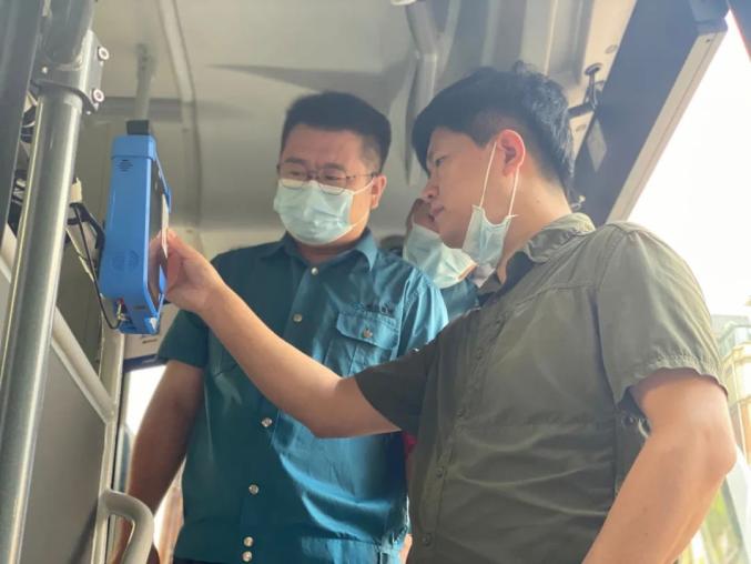 7月25日,三河(燕郊)至北京通勤定制快巴一线首发站,乘客“刷脸刷证”上车。