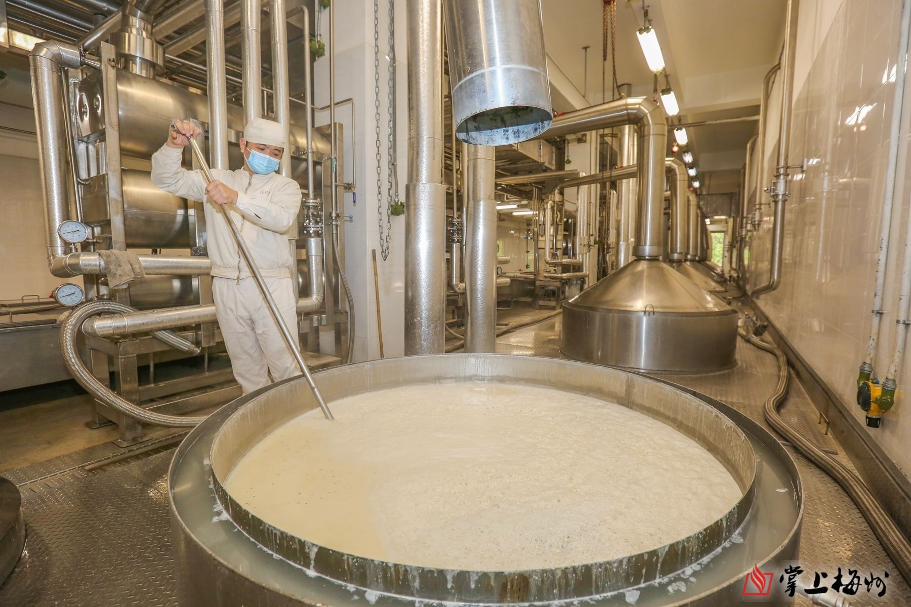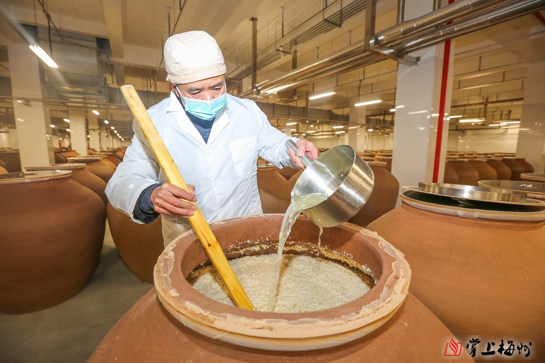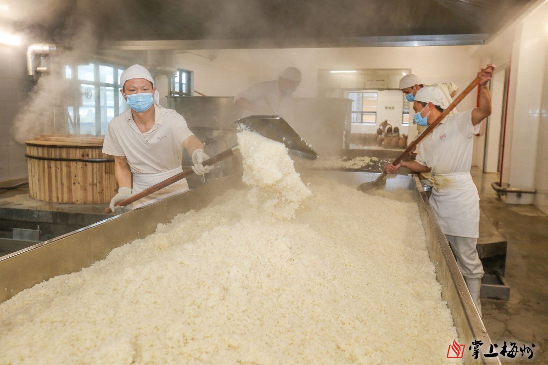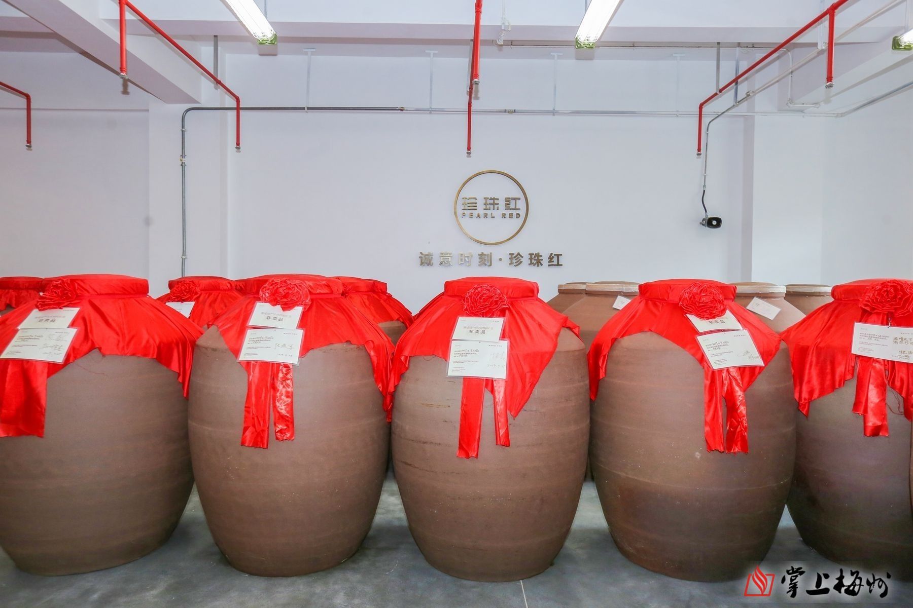 木甑蒸饭、手工拌曲、手工打井、陶坛发酵、多轮发酵、直火蒸馏、陶缸贮藏……在位于兴宁市径南镇黄蜂窝的广东明珠珍珠红酒业有限公司酒文化产业园内,记者跟随着该公司生产副总经理、高级工程师、广东酿酒大师罗振波,参观了珍珠红酒酿酒工艺流程。现代化的厂房、干净整洁的园区,让记者耳目一新。据罗振波介绍,酒文化产业园集酿酒、藏酒、酒文化传播及产学研功能于一体,建筑面积约15万平方米,年综合产能10000吨。“兴宁珍珠红酒”历史悠久,相传明正德五年,兴宁县令祝枝山请民间善酿酒师,开设“珍珠红烧坊”,并起名“珍珠红酒”,馈赠亲朋。罗振波是珍珠红酒酿制技艺第七代传承人,他告诉记者,目前珍珠红酒继续坚持传统的返祖古法手工酿制,不添加任何非自身发酵的物质,确保每一滴酒皆为高品质的原汁原浆、原色原味纯粮真原酒。