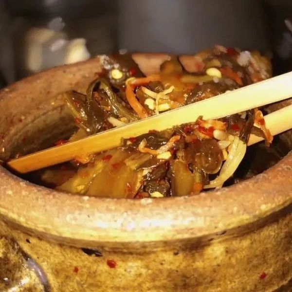 腾冲人多喜酸辣,酸腌菜是当地典型的酸辣美食,饭桌上常常摆上辅以辣椒、蒜末等佐料拌成的脆嫩酸爽、口角生津的腊腌菜,或以干腌菜配上少许调料,烧一锅开胃、解腥除腻的酸辣汤。小时候,厨房的角落总会静静站立着一两只鼓腹、平底、收口的陶罐,妈妈总会在饭前用筷子从里面夹一碗香味扑鼻的酸腌菜。这个神奇的泡菜坛多产生于碗窑,平平无奇的坛子腌制出了腾冲人不可或缺的美食。