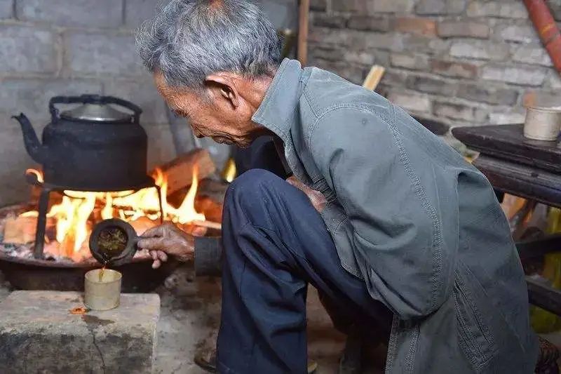 这时三五老汉围绕火塘而坐,添柴加火,点炭烧水烤茶,浓啜数巡,闲聊几句春播秋种,日日如此,年年如是。老人们一生劳作,寂静质朴,喝“雷响茶”是村中很多老人保留的习惯,饭饱或闲暇时,千言万语抵不过一句“喝茶去”。
