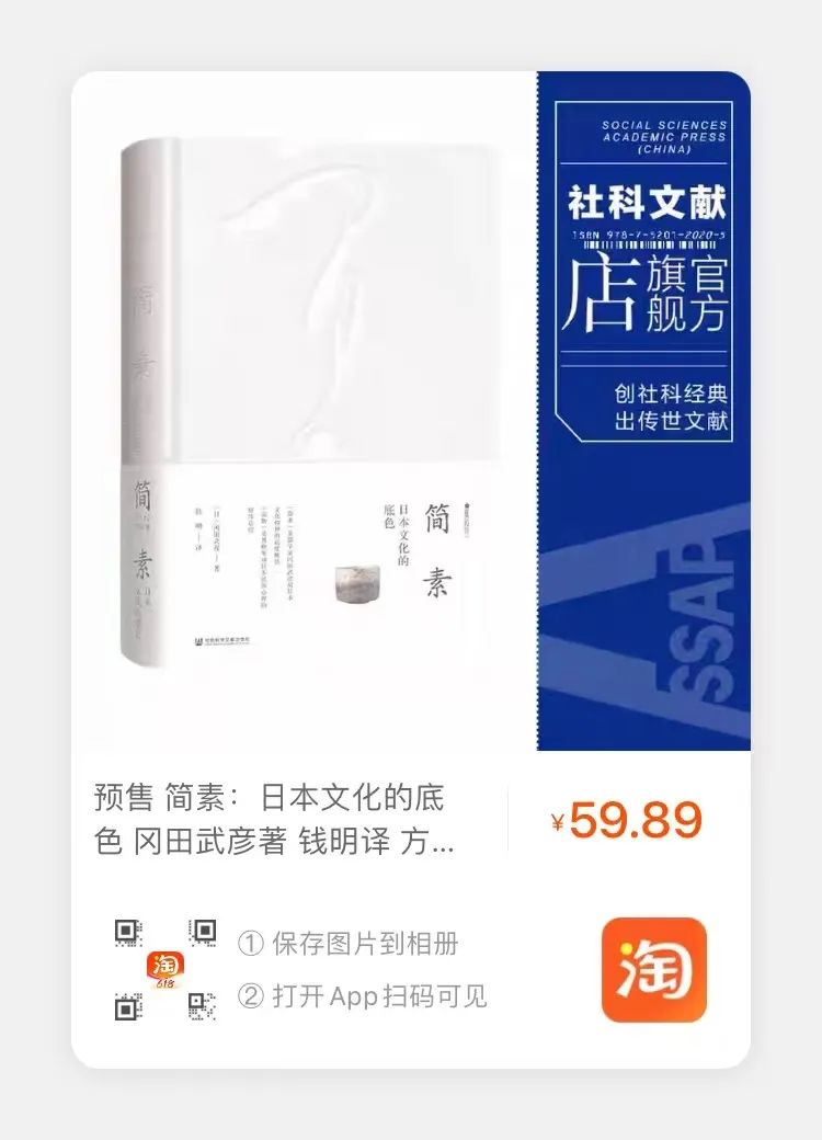 ★冈田武彦将日本人的基本世界观总结为“简素”与“崇物”,前者即看重留白,推崇表现形式的简约;后者则为崇敬万物,追求与自然共生。“简素”是他对日本文化精神的高度概括;“崇物”是其晚年对日本民族心理的精练总结。