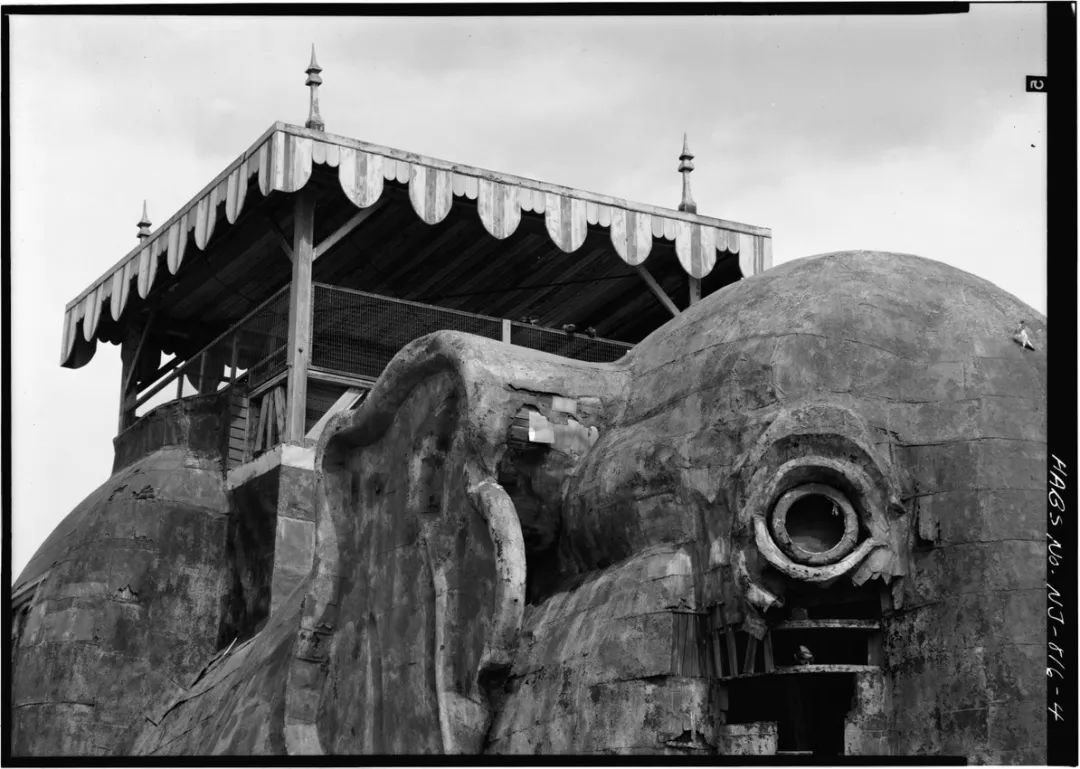 纽泽西州马盖特城内由詹姆斯·V·拉弗蒂(James V. Lafferty)创作的“大象露西”(Lucy the Elephant)雕塑。照片大约拍摄于1933年以后。© www.loc.gov